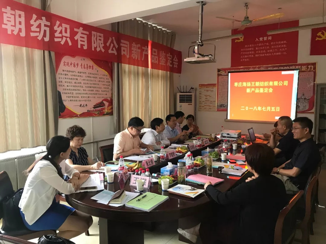 7月5日,由中國棉紡織行業協會組織的棗莊海揚王朝紡織有限公司彩棉彈力牛仔面料、仿針織四面彈牛仔面料及棉竹代爾混紡紗牛仔面料三項新產品鑒定會在公司召開。
